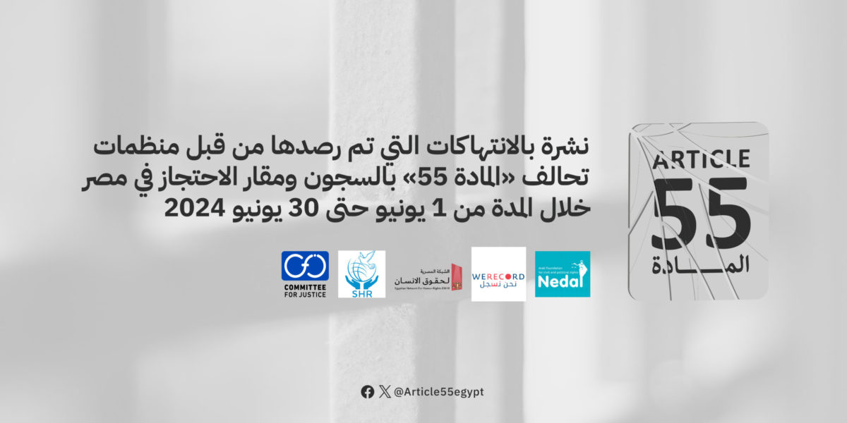 قالت المنظمات المشاركة في تحالف المادة 55، إن المشهد الحقوقي والسياسي في مصر شهد تطورات مهمة خلال شهر يونيو/ حزيران 2024.