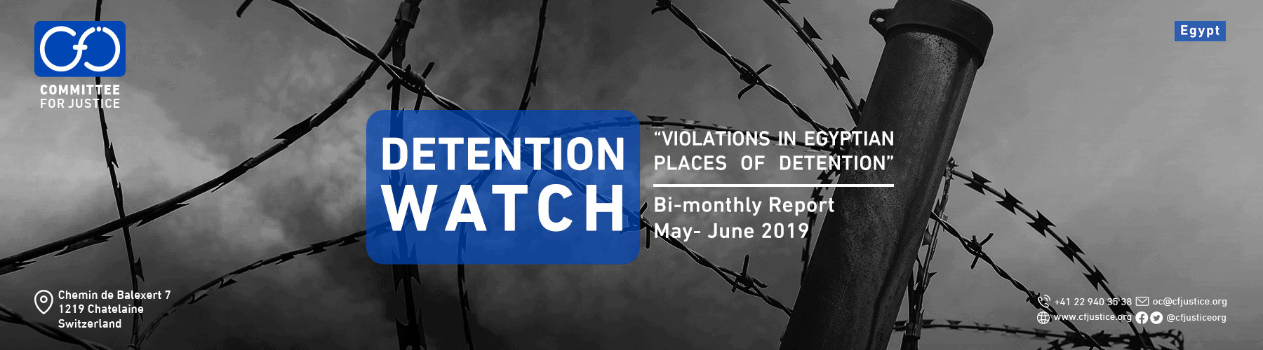 HomepageDetention Watch, “Violations in Egyptian Places of Detention” Bi-monthly Report May- June 2019 Media Officer in All Reports Detention Watch, “Violations in Egyptian Places of Detention” Bi-monthly Report May- June 2019 View FullscreenSkip to PDF content Next Read: Egypt: Aboul-Fotouh’s life in critical danger from prolonged medical neglect in prison » Related Post CFJ Report on Participation in the 83rd Ordinary Session of the African Commission on Human and Peoples’ Rights Egypt: Universal Periodic Review Team at the UN Relies on a Report by CFJ in Review of Workers’ Conditions in Egypt Egypt: Joint report on mounting human rights crisis