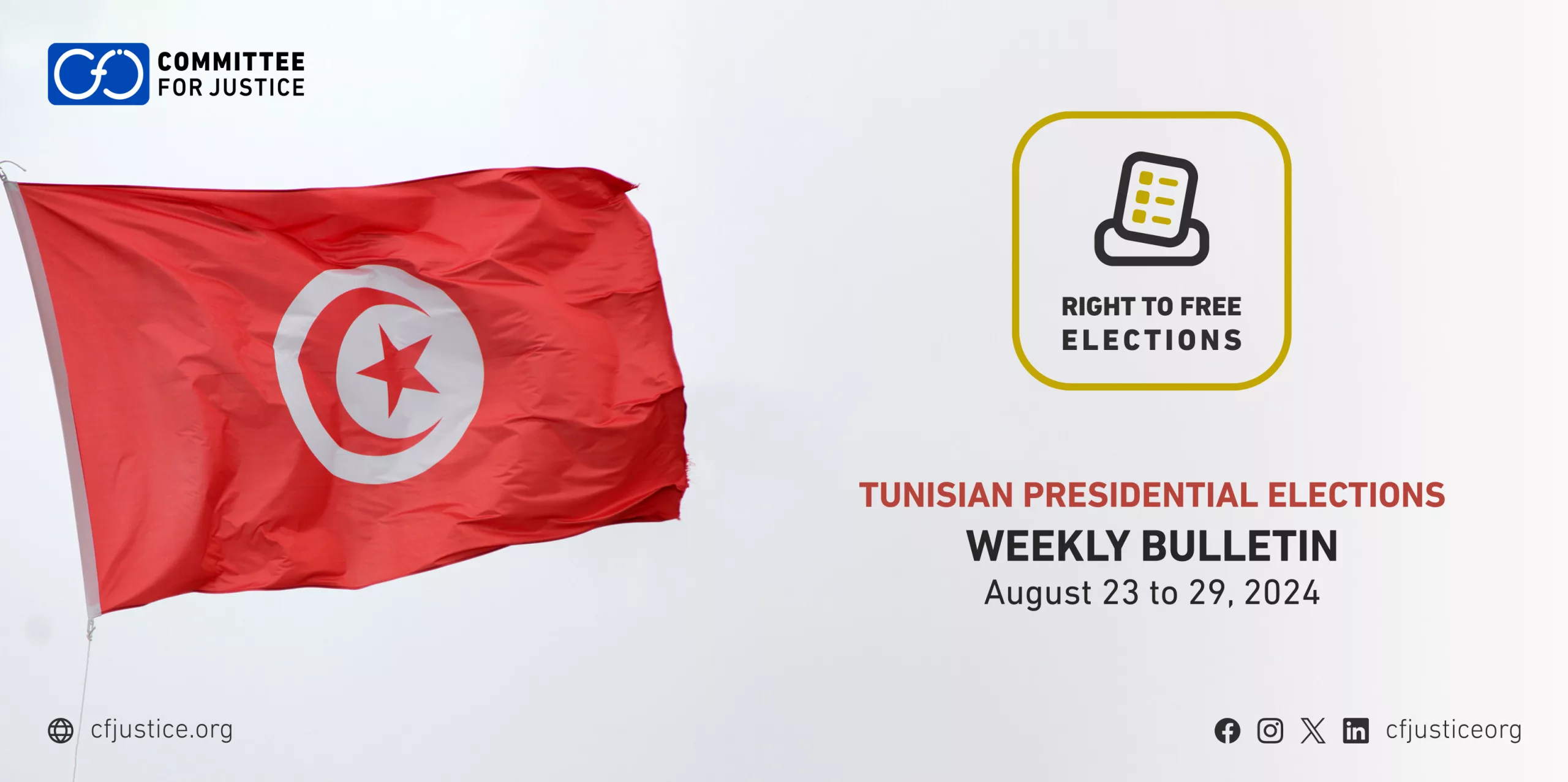 The Committee for Justice (CFJ) has released its fourth bulletin on monitoring the presidential elections in Tunisia as part of its “Right to Free Elections” project, which covers the activities and practices of the electoral process for the period from August 23 to August 29, 2024.